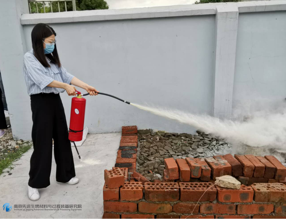 講解結束后,由安全員盧康帶隊,大家依次進行了滅火器使用實操訓練。