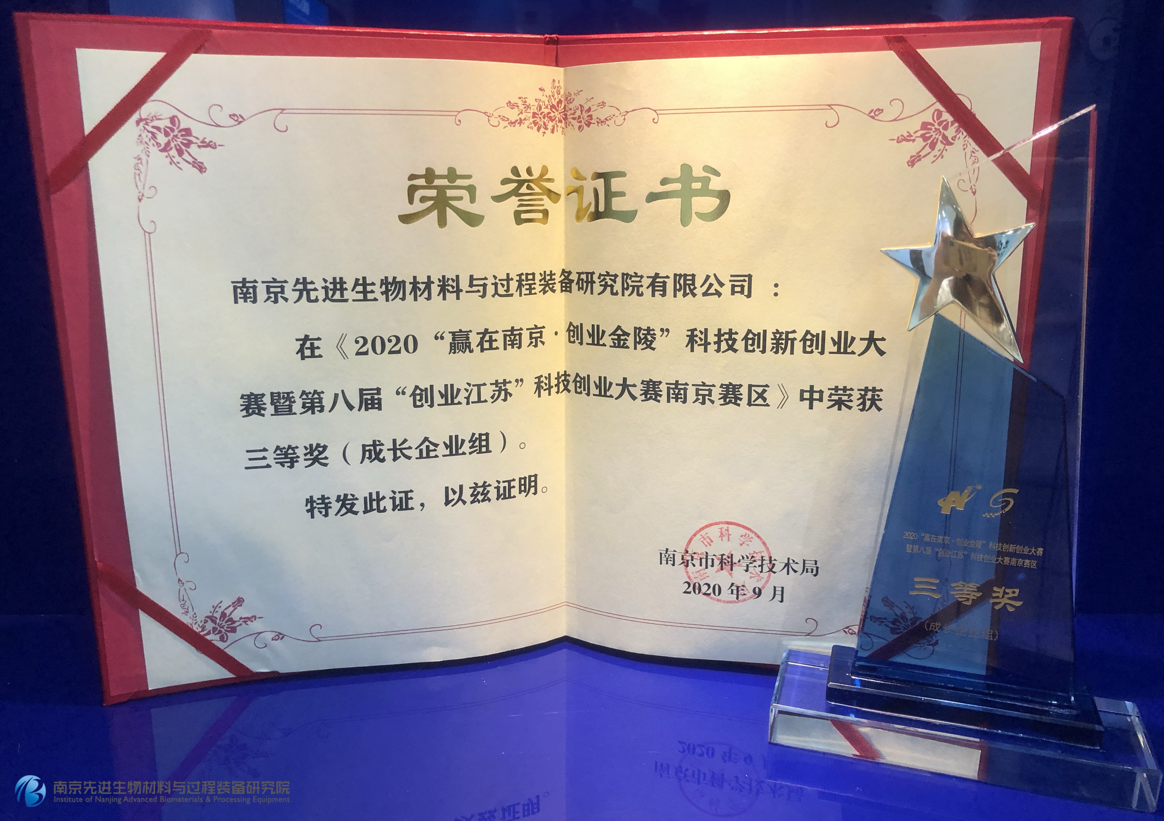 9月24日,2020“贏在南京·創業金陵”科技創新創業大賽暨第八屆“創業江蘇”科技創業大賽南京賽區頒獎儀式在南京廣播電視臺舉行,我院在這次大賽中喜獲三等獎!